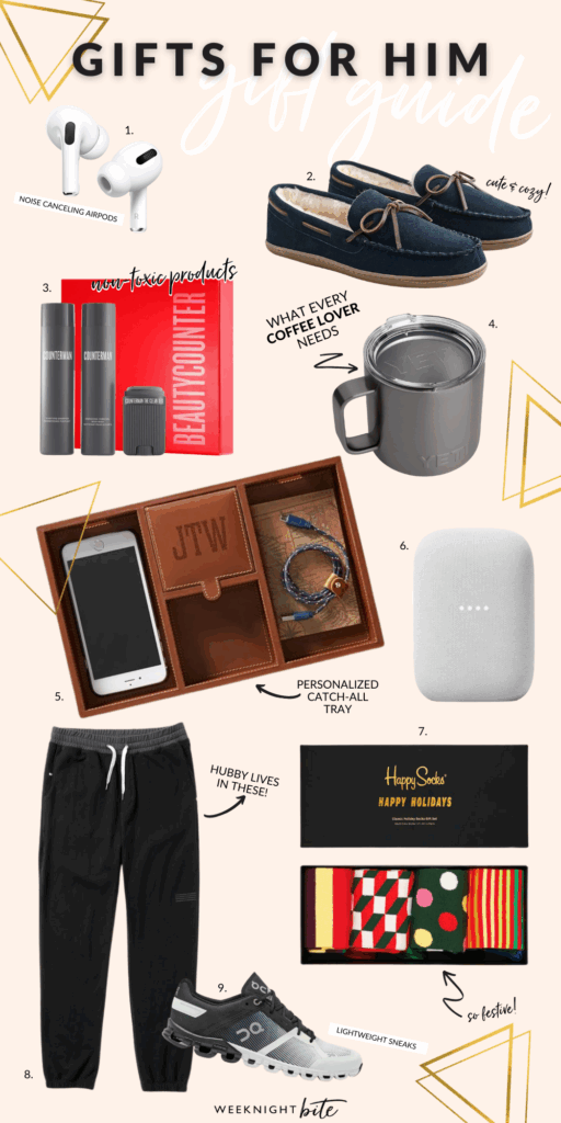 - Google Nest Audio: he will love these smart speakers that will stream his favorite music and also respond to him when he asks what the weather is, what time it is, and how long he should cook chicken. Plus they’re super easy to move from room to room!