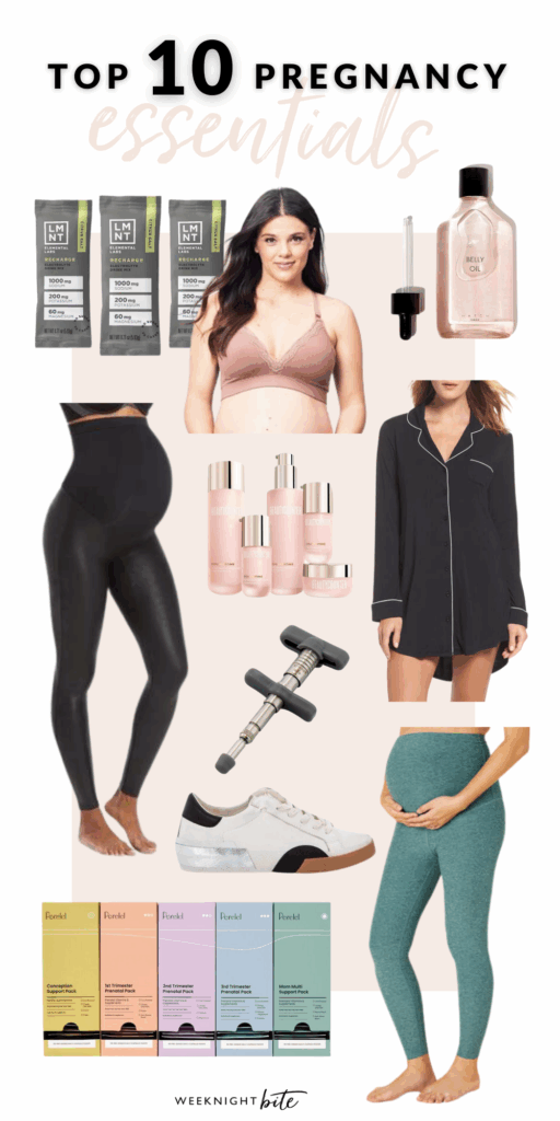 5. Prenatal Vitamins — I’ve been using Perelel prenatal vitamins this pregnancy, which I really loved. What makes them different is they have specific packs for each trimester, and they even make a pre-conception pack and a Mom Support Pack for after baby arrives. It’s a subscription that factors in your due date so you get your 1st trimester, 2nd, and 3rd trimester packs exactly when you need them. A new prenatal I just tried recently is called Needed. They make prenatal capsules, but they also have the option of a prenatal multivitamin powder, which is great for mixing into smoothies, drinks, yogurt etc. I know so many women can’t tolerate taking pills while pregnant, especially in the beginning, so this is an amazing option! I started mixing it into my smoothies over the last week with their collagen powder and would definitely recommend it. (This isn’t sponsored whatsoever, but they did provide a 20% discount code for me to share, and all $ earned from this code goes towards women’s research. You can use code WEEKNIGHTBITE at checkout.)