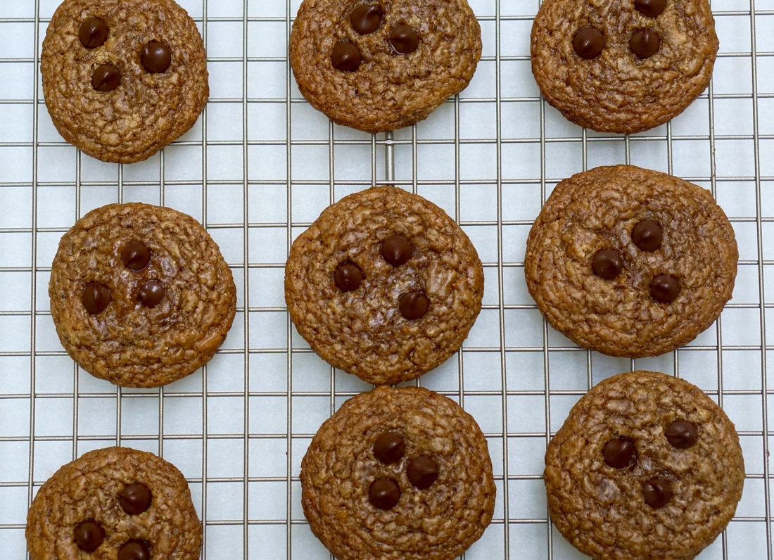 Note: you can also use a fork to make the cute criss cross pattern on top of the cookie before putting them in the oven. This looks nice especially if you don’t add the chocolate chips. But obviously I go with chippers all the way.