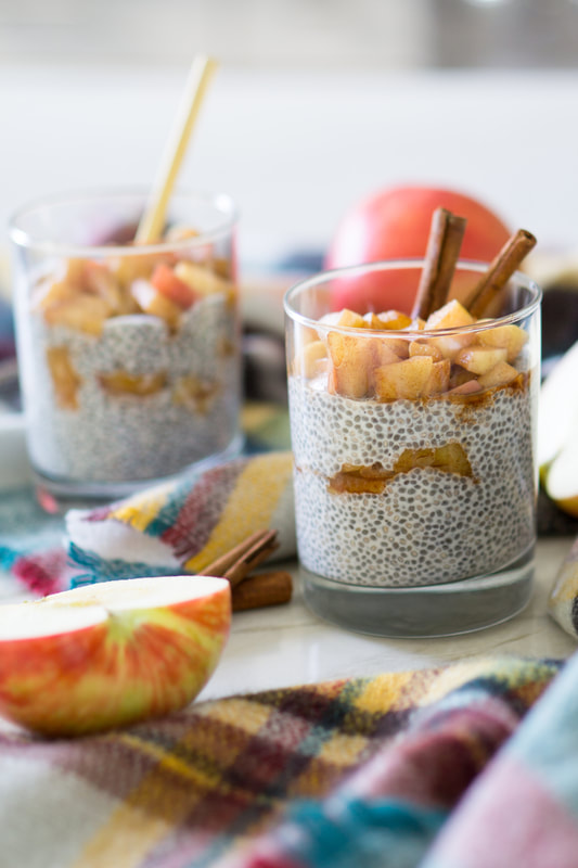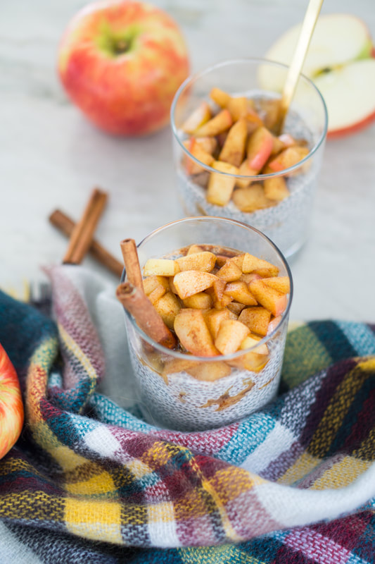 - Place a serving of chia pudding in a bowl and top with a scoop of sautéed apples. Or feel free to pour all of the apple mixture into the chia pudding tupperware and mix in with the chia pudding.