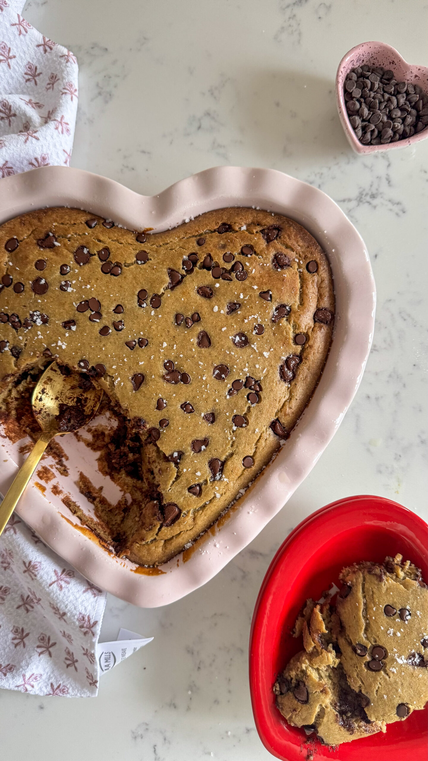 - Preheat oven to 350ยฐF. Lightly grease an 8×8 baking dish (or a 9-inch cake pan or heart-shaped baking dish like mine) with avocado oil spray.