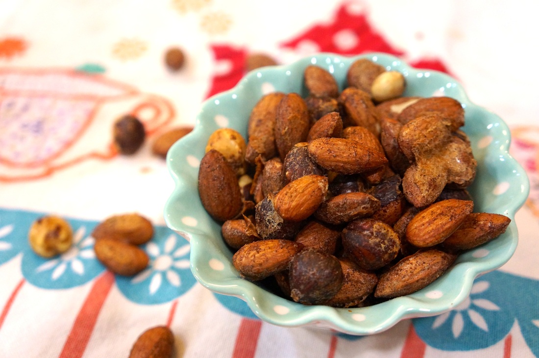 But in the meantime with one week left of our challenge, I’m racking my brain for recipes that I can whip up quickly, that are sugar-free, healthy, and satisfying enough for my demanding sweet tooth. SO . . . You know those candied, cinnamon-glazed nuts that they have at fairs, farmers markets, and football games? The ones that smell amazing when you walk by them? I LOVE those. They’re so freaking good. I mean, how could they not be good when they’re coated in oil, sugar, brown sugar, and cinnamon? Mmmmm. I decided to make my own version, without the sugar or oil, but still delicious, crunchy, and sweet. Using just egg white, stevia, vanilla, cinnamon, and salt, my hazelnuts and almonds turned out perfectly. If you’re looking for healthy, sugar-free and guilt-free sweet, these Cinnamon Glazed Nuts are your new bestie. Here’s how to make them: