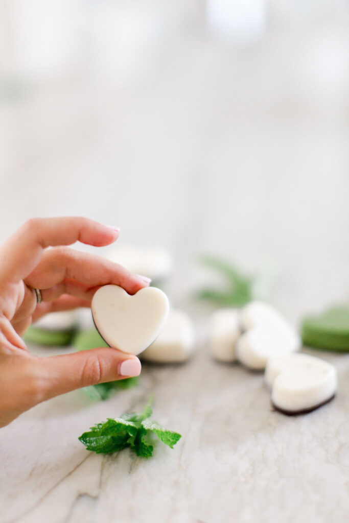 I have to credit my friend Nadia from Body Unburdened for bringing this recipe into my life. I saw it on her website a few months ago, and ever since, I’ve been making a big batch of these treats on a weekly basis. There’s a few reasons why I’m obsessed with these creamy coconut mints. First, they’re seriously delicious. They taste like creamier Andes mints, and who doesn’t love those!? Secondly, they’re made with just a couple ingredients – super easy. And third, they’re a great source of healthy fat that will help keep your blood sugar balanced and keep you full & satiated, making them the perfect afternoon snack to satisfy your 3pm sweet cravings and hold you over until dinner. Plus, the mint in them actually helps suppress appetite (think mint tea post-dinner!) and keeps cravings at bay. Really doesn’t get much better than that!