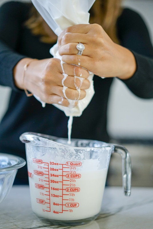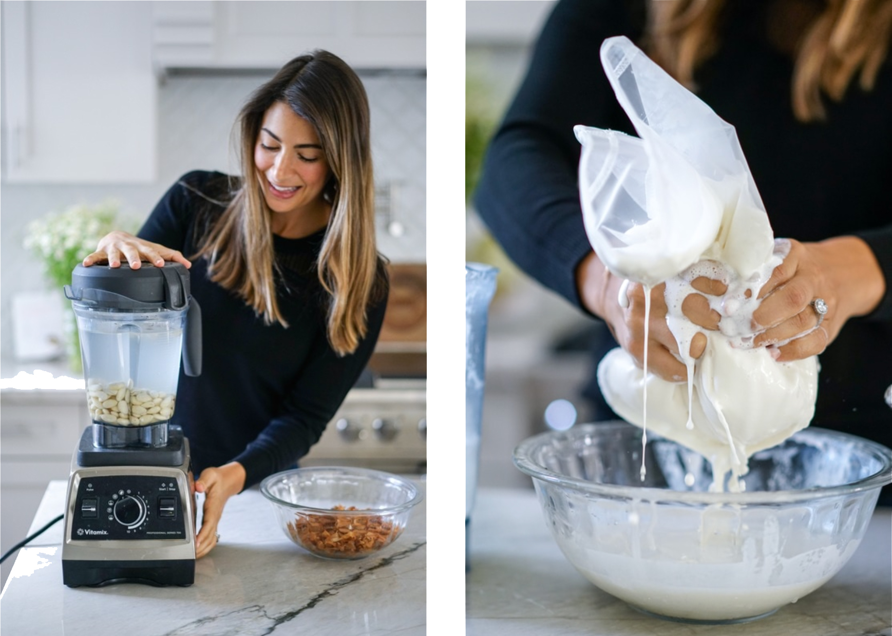 I’ve been drinking store-bought almond milk for years, and to be honest, I never really had the desire to try making my own because I figured it would be really time consuming and difficult. After all the insta-hype about people making their own, I figured, what the heck, I’ll try it. And I’m so glad I did! Not only is it not difficult at all (seriously, it’s actually super easy… and turns out Greg Focker was right, you really can milk anything!!), but it’s also beyond delicious. The taste of the store-bought brands don’t even come anywhere close to comparing to homemade, and they always have extra additives, preservatives, and fillers (sometimes harmful ones like carageenan) to extend the shelf life. Homemade almond milk can be as simple and pure as almonds and filtered water. I added vanilla, sea salt, and cinnamon to mine, and it was incredible… like a decadent milkshake! I seriously can’t get enough!