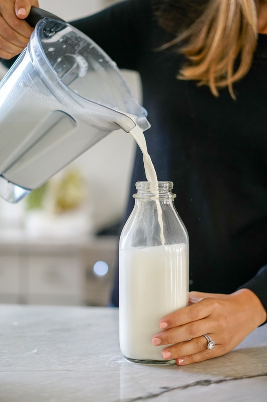 6. Pour the strained almond milk back into the blender with the cinnamon, vanilla, and sea salt, and blend once more for about 30 seconds.