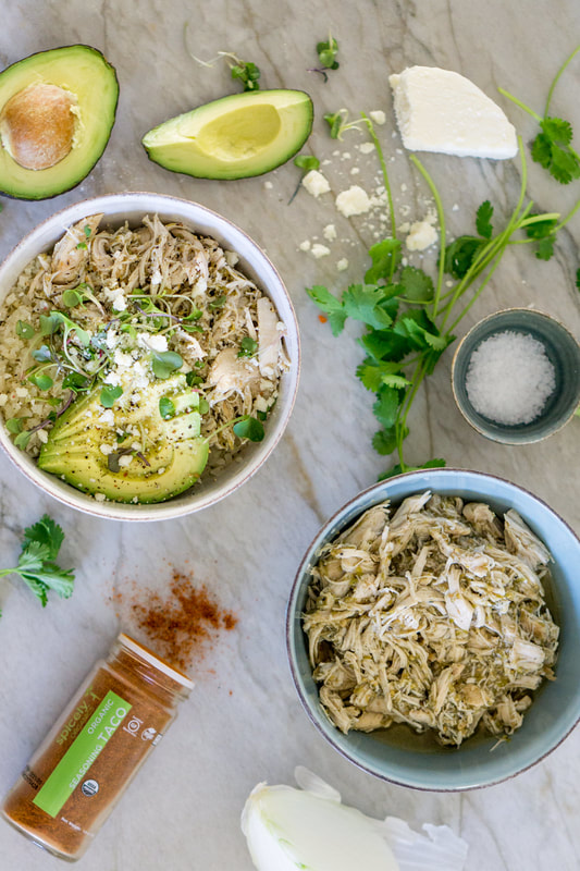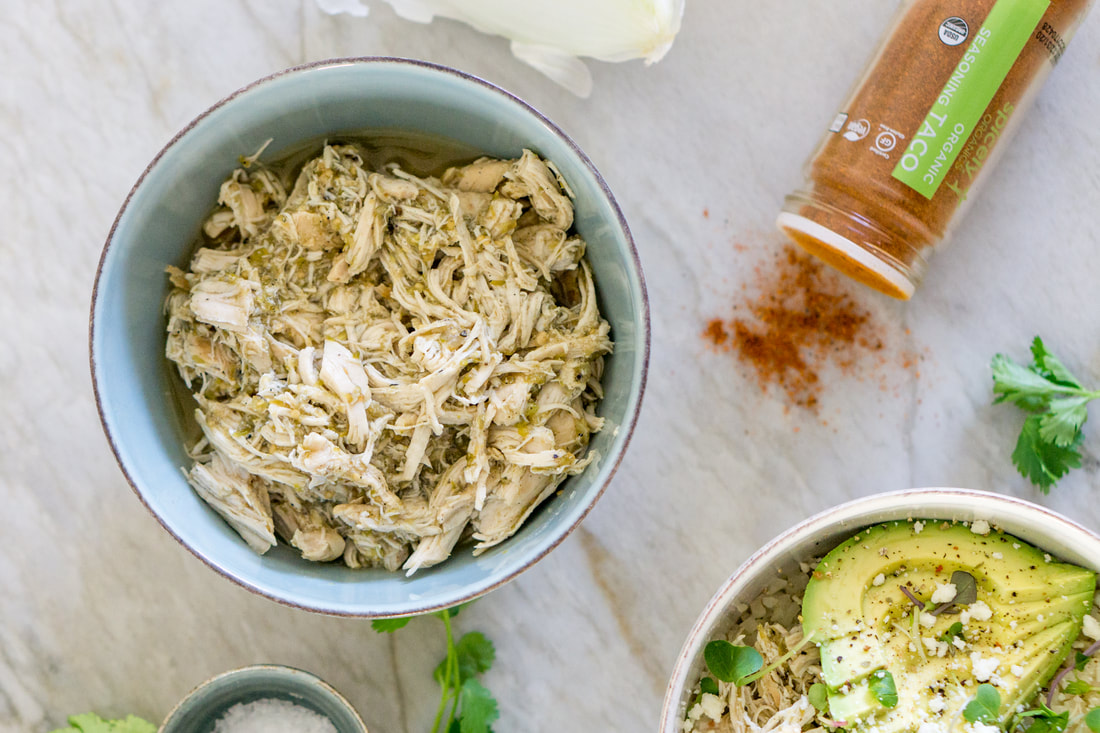 I like to make a big batch of this shredded salsa chicken on a Sunday or Monday and then use it for several meals throughout the week. Aside from being the perfect thing for a healthy taco night, I also throw it in my salads, serve it over cauliflower rice and veggies and make taco bowls with it, make chicken quesadillas with Siete Foods grain-free tortillas, or make chard or collard wraps with it… it’s literally the perfect protein to add to any meal!