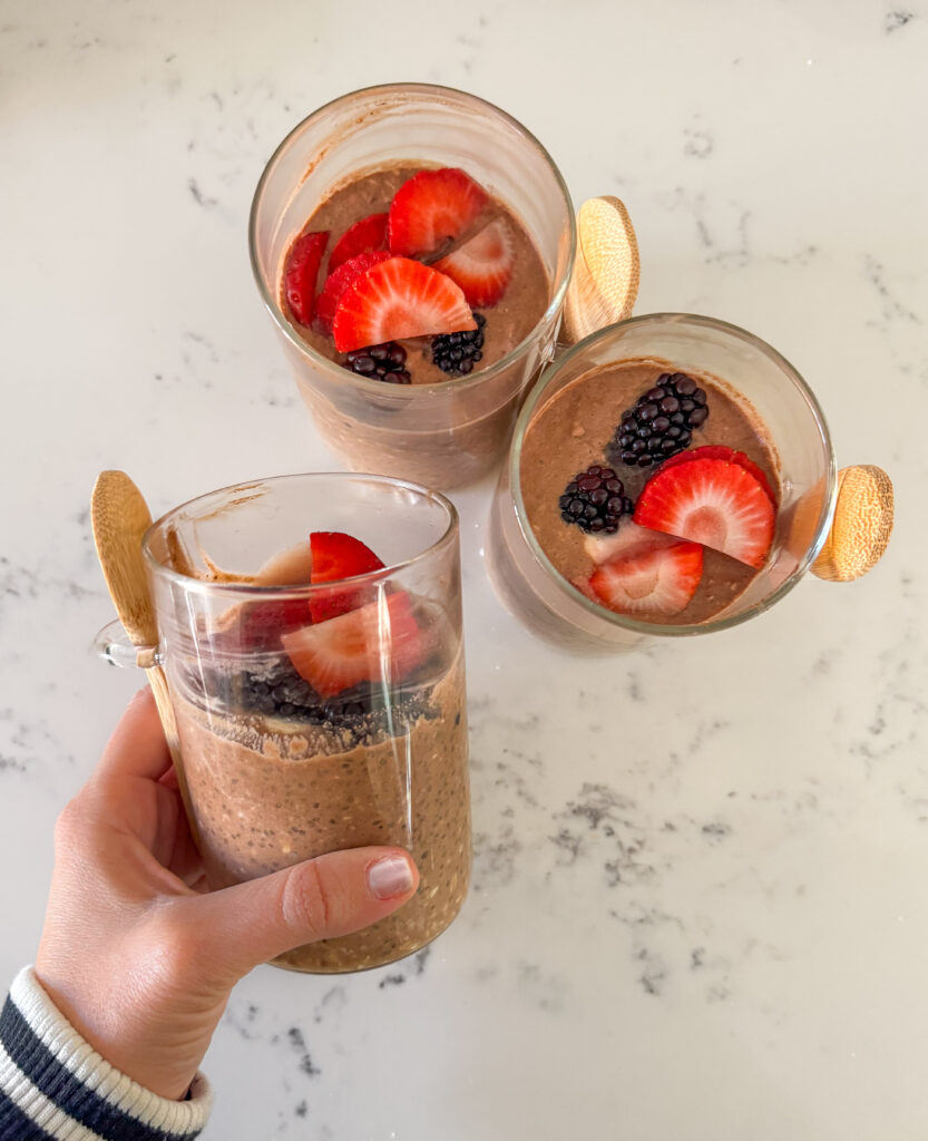 Overnight Oats are one of my favorite things to have prepped in the fridge. If you haven’t tried this recipe yet, it’s a must-try too! I always add protein powder and chia seeds to make them extra filling, and they’re perfect for a busy morning or as a pre-workout breakfast. I make several jars at once so breakfast is done for days. Here are my favorite jars to prep my oats.