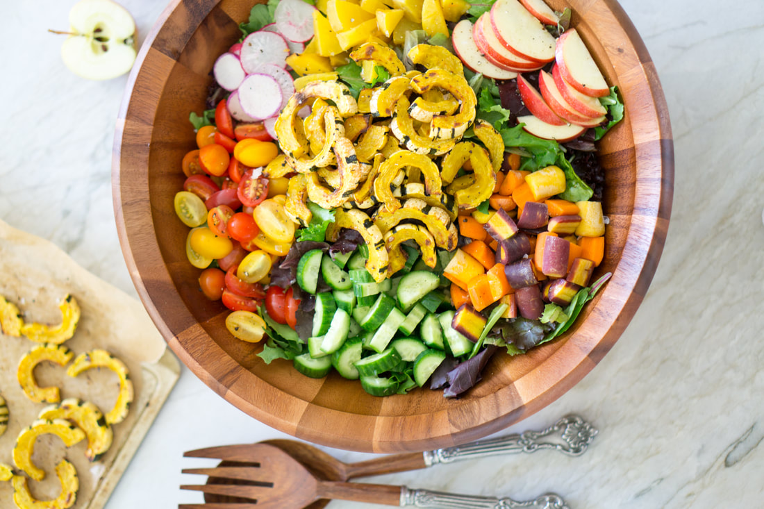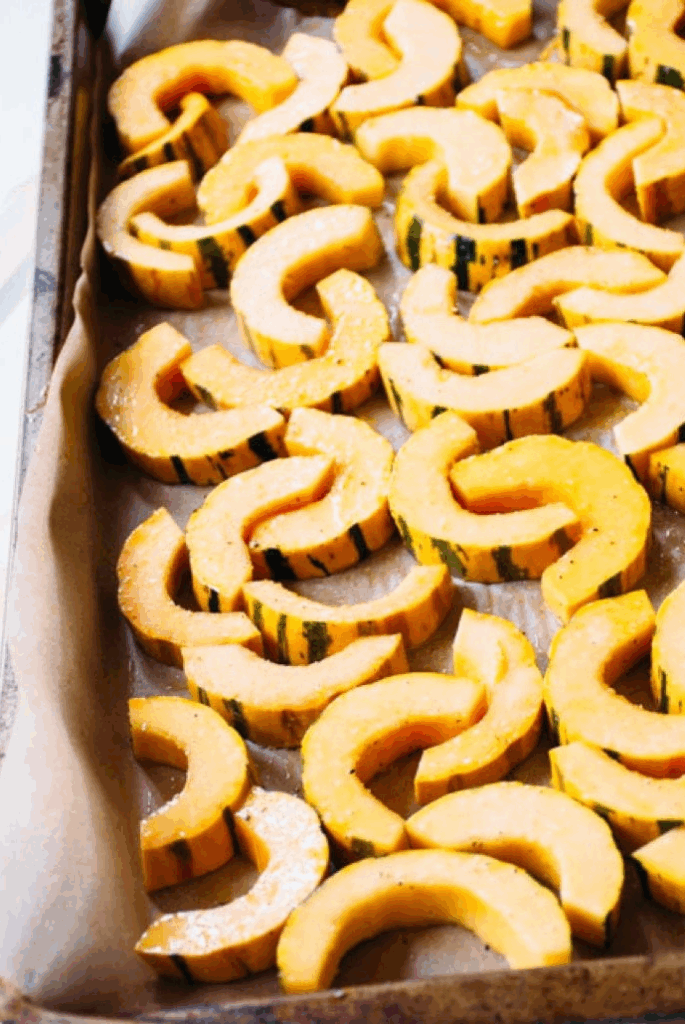 Can you believe it’s already November!? Good thing it’s finally starting to feel like Fall in San Diego (AKA it’s below 70°, instead of 80°, ha!). Now I can officially get in the swing of all the Fall recipes, like this Roasted Delicata Squash Salad, which would be the perfect healthy addition to your Thanksgiving spread! Because no Thanksgiving is complete without an epic Fall salad.