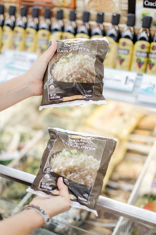 If I was forced to choose one thing that I absolutely can’t leave Trader Joe’s without, it would have to be their frozen Organic Riced Cauliflower. It’s already riced and ready to go, and seriously couldn’t be easier to just pour right into your pan for any recipe you’re making. My go-to’s are Cauliflower “Fried Rice”, Pesto Shrimp Cauliflower Rice Bowls, and Chicken Taco Bowls (the recipe says broccoli rice, which you can also buy at TJ’s, or swap for cauli rice!).